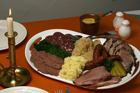Este é um prato típico de outono/inverno, da época de abate de animais. Normalmente é servido com (Kesselfleisch) carne de porco (vazio) cozido, com Leberwurst (linguiça de fígado) ou Blutwurst (morcilha preta). Tudo com ingredientes frescos provenientes do abate. Acompanhado de Sauerkraut (Choucrute) ou Kartoffelsalat (salada de batata). Os acompanhamentos podem mudar de região para região.